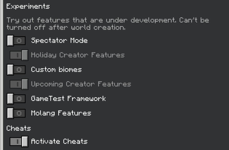 You didn't activated your world's Experimental Gameplay. Always double check if you have these settings enabled ↷– Holiday Creator Features